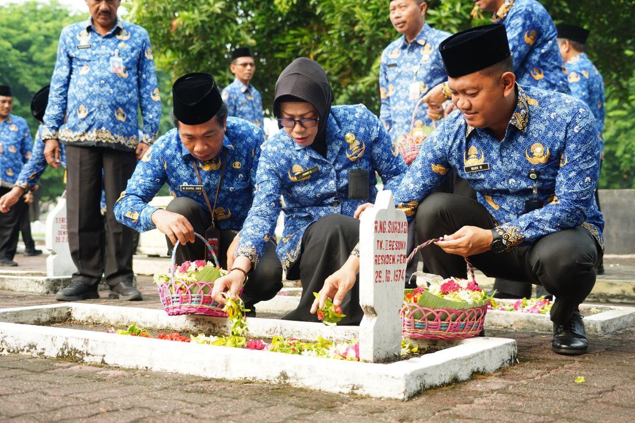 Pemkab Sidoarjo Peringati HUT KORPRI Ke-53 & HUT Dharma Wanita Persatuan Ke-25 Tahun 2024 Ziarah ke TMP Kusuma Bangsa