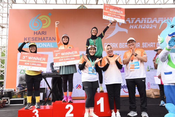 Dalam kesempatan tersebut Ketua TP-PKK Kabupaten Sidoarjo dr. Sriatun berkesempatan hadir untuk menyerahkan hadiah. Mulai dari juara lomba lari 10 km perempuan dan laki-laki serta juara lomba lari 5 km perempuan dan laki-laki.