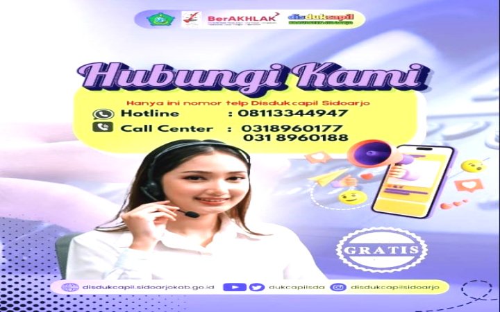 Semua pelayanan yang diberikan oleh Disdukcapil Kabupaten Sidoarjo bersifat gratis. Jika ada pihak yang menghubungi dan mengaku sebagai petugas Disdukcapil Kabupaten Sidoarjo agar segera melaporkan kepada Disdukcapil Kabupaten Sidoarjo atau pihak Desa/Kelurahan, pihak Kecamatan maupun Kepolisian setempat untuk ditindaklanjuti.