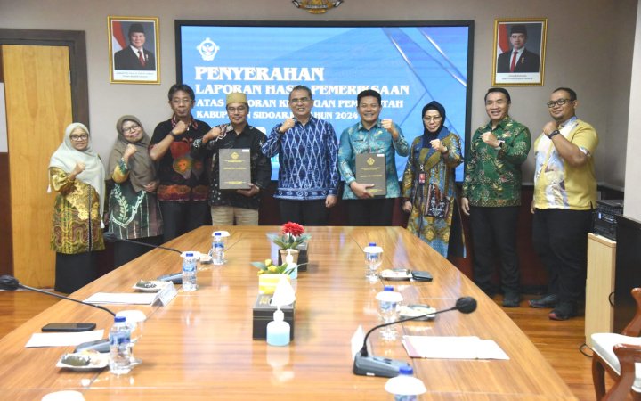 Sidoarjo, Arjunanusantaranews.com,- Kabupaten Sidoarjo kembali terima opini WTP berturut-turut. Dalam laporan Hasil Pemeriksaan (LHP) terhadap Laporan Keuangan Pemerintah Daerah (LKPD)  Tahun 2024 Pemerintah Kabupaten Sidoarjo mendapat opini Wajar Tanpa Pengecualian (WTP) dari BPK Perwakilan Provinsi Jawa Timur. Capaian itu menjadi yang ke 12 kali berturut-turut yang diperoleh Kabupaten Sidoarjo sejak tahun 2013 lalu. Pemkab Sidoarjo adalah daerah kedua penerima LHP LKPD 2024 dari 38 Kabupaten/kota di Jatim. Pasalnya penyampaian LKPD unaudited tahun 2024 kepada BPK Perwakilan Jatim kemarin dapat tepat waktu.
