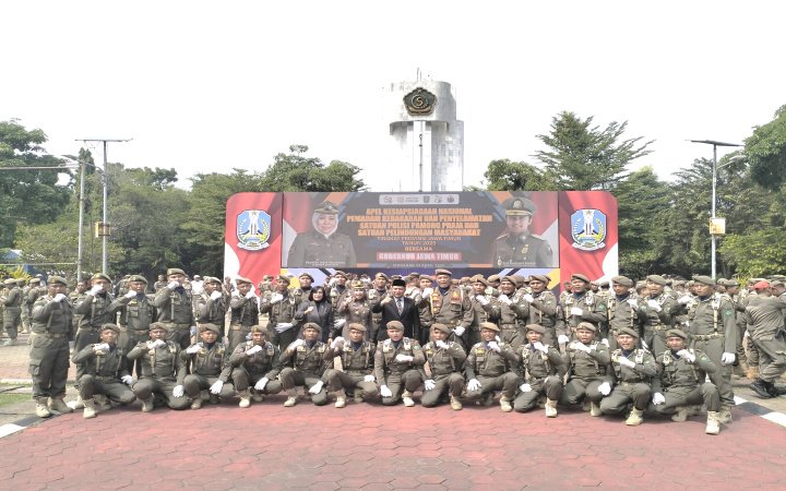 Pemprov Jatim Gelar Apel Kesiapsiagaan Nasional Di Alun-Alun Sidoarjo. Apel dibuka langsung oleh Gubernur Khofifah yang dalam sambutannya memberikan apresiasi tinggi kepada seluruh petugas lintas instansi. Menurutnya, sinergi antara Damkar, Satpol PP, Linmas, relawan, TNI, dan Polri telah membuktikan keberhasilan dalam melindungi masyarakat Jawa Timur.