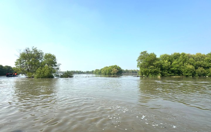 Tiga perahu digunakan bupati beserta rombongan. Hampir satu jam perjalanan dari sungai Kalitikung hingga muara Curah Ombo untuk melihat lebih langsung kondisi ribuan hektar tambak yang telah hilang tersebut.