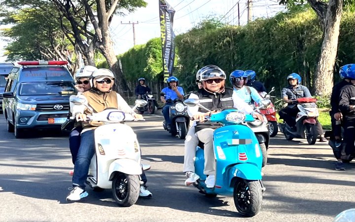 Sidoarjo, Arjunanusantaranews.com,- Bupati Sidoarjo Ikut Meriahkan Scooter Riding di Lanudal Juanda. Bupati Sidoarjo, H. Subandi bersama istri, Ny Sriatun Subandi ikut memeriahkan acara Scooter Riding di Lanudal Juanda, pada Minggu (15/6/2025).