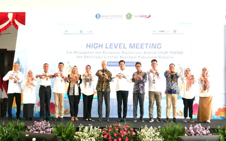 “Mulai dari pajak daerah, retribusi, hingga layanan kesehatan, semua harus diarahkan ke sistem non-tunai. Dengan begitu, layanan publik lebih cepat, aman, dan risiko kebocoran anggaran bisa ditekan,” katanya saat membuka acara High Level Meeting Tim Percepatan dan Perluasan Digitalisasi Daerah (HLM TP2DD) dan Sosialisasi Literasi Keuangan Kabupaten Sidoarjo di Pendopo Delta Wibawa pada Rabu (13/8/2025).