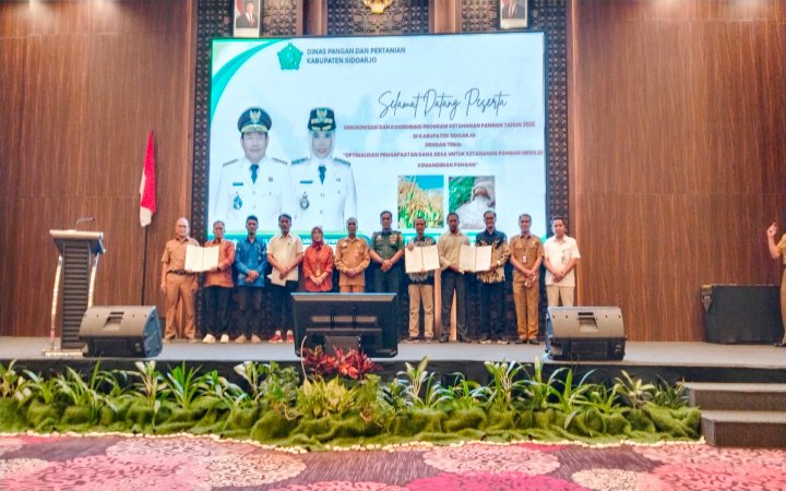 Sinkronisasi ketahanan pangan tahun 2025 Kabupaten Sidoarjo. Asisten Perekonomian dan Pembanguan Kabupaten Sidoarjo Muhammad Mahmud, SH,. MM. Juga menyampaikan bahwa ini merupakan kolaborasi yang pertama dilakukan dalam sinkronisasi maka optimalisasi penggunaan dana desa, di desa – desa yang ada di Kabupaten Sidoarjo.