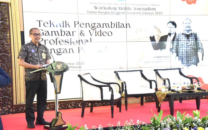 Sidoarjo, Arjunanusantaranews.com, – Kominfo Sidoarjo ajarkan membuat konten jurnalistik lewat HP. Cara membuat konten jurnalistik berkualitas menggunakan HP diajarkan Dinas Komunikasi dan Informatika Kabupaten Sidoarjo lewat Workshop Mobile Journalism, Selasa, (23/9/2025). Pelatihan yang digelar di Pendopo Delta Wibawa Kabupaten Sidoarjo itu diikuti 200 peserta. Dua narasumber dihadirkan untuk memberikan pengetahuan tentang teknik pengambilan gambar dan video secara profesional hanya dengan menggunakan ponsel. Kegiatan yang dibuka oleh Sekretaris Dinas Kominfo Sidoarjo Eri Sudewo itu mendapat sambutan antusias dari peserta pelatihan. Terlihat berbagai pertanyaan dilontarkan kepada narasumber editor senior beritajatim.com Hendro Dwi Laksono dan Asisten Manajer LKBN Antara Biro Jatim Malik Ibrahim. Kegiatan tersebut juga menghadirkan Ketua DPRD Sidoarjo Abdilah Nasih sebagai narasumber kegiatan.