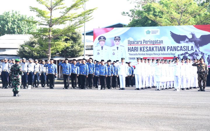 Sidoarjo, Arjunanusantaranews,com, – Pemkab Sidoarjo Peringati Hari Kesaktian Pancasila. Upacara memperingati Hari Kesaktian Pancasila digelar Pemerintah Kabupaten Sidoarjo di halaman Mall Pelayanan Publik/MPP Lingkar Timur, Rabu, (1/10/2025). Upacara yang digelar setiap tanggal 1 Oktober 2025 itu diikuti ratusan pasukan TNI, Polri dan berbagai instansi pemerintah daerah. Selain itu upacara yang dipimpin oleh Sekda Sidoarjo Fenny Apridawati itu juga diikuti oleh organisasi masyarakat dan pelajar.