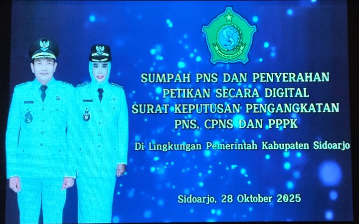 Bertepatan dengan Hari Sumpah Pemuda 28 Oktober 2025, Pemerintah Kabupaten Sidoarjo telah mengangkat Pegawai Pemerintah dengan Perjanjian Kerja (PPPK) tahap dua  dengan menggelar Pelantikan pada 324 pegawai negeri  hari ini. Dengan mengikuti sumpah PNS dan penyerahan petikan secara digital, Surat keputusan Pengangkatan PNS, CPNS dan PPPK di lingkungan Pemerintah Kabupaten Sidoarjo, yang telah berjalan dengan  baik.