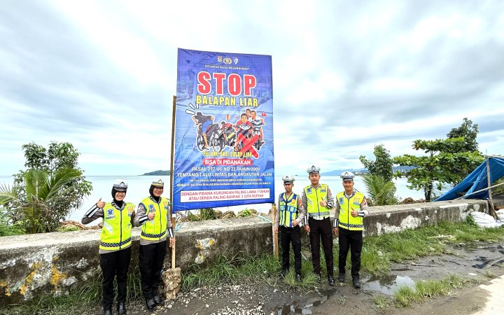 Sulbar, Arjunanusantaranews.com, – Stop Balap Liar, Tartib dan Himbauan dari Ditlantas Polda Sulbar. Dalam upaya konkret memperkuat budaya keselamatan berlalu lintas dan mengatasi masalah perilaku yang mengganggu di jalan raya, Ditlantas Polda Sulbar melaksanakan program pemasangan spanduk serta banner himbauan yang menyasar delapan lokasi strategis di Kota Mamuju, Rabu (25/2/26).