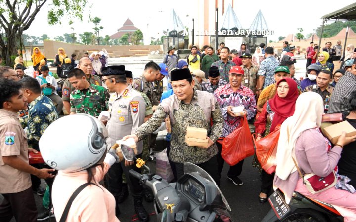Forkopimda dan ASN Sidoarjo bagikan 75.000 paket takjil. Bupati berharap momentum ini dapat menciptakan suasana daerah yang lebih