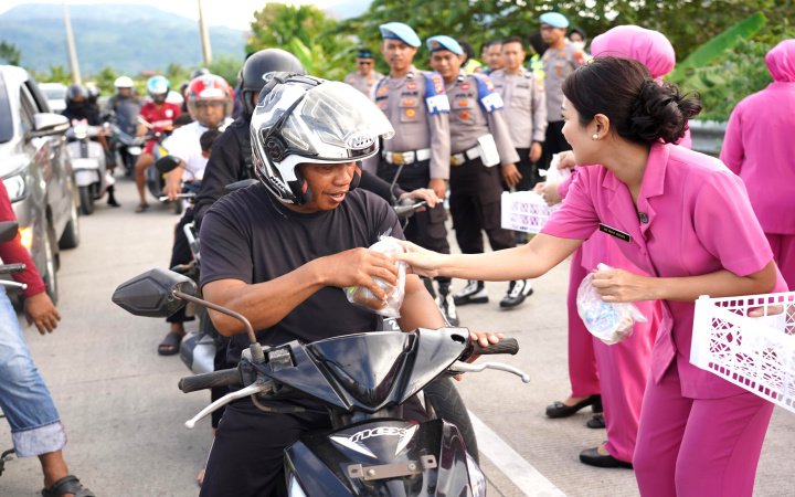 Berkah Ramadhan Kapolda Sulbar dan Bhayangkari Bagikan Takjil