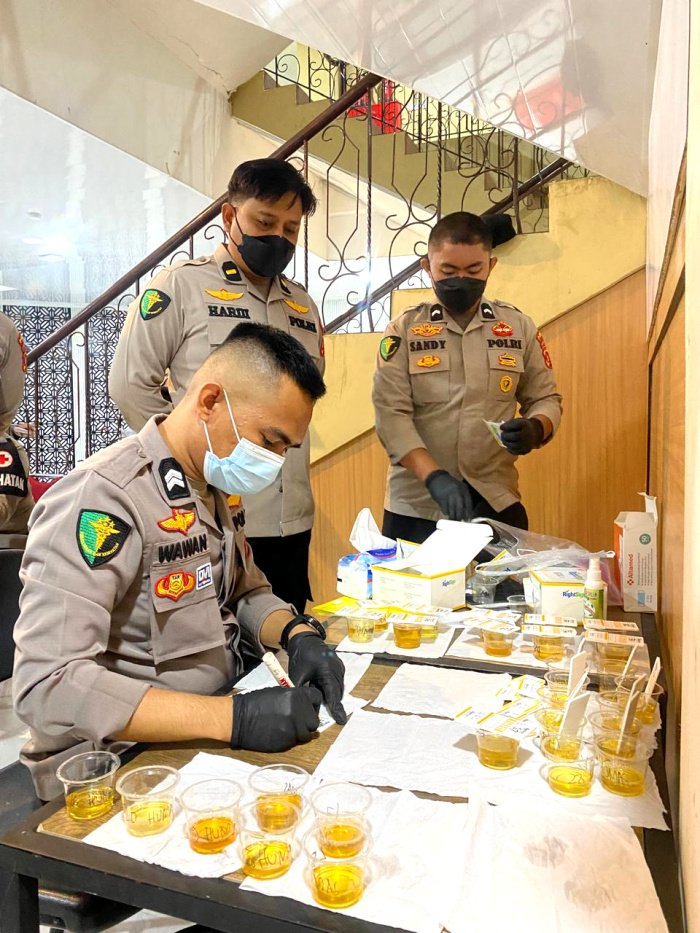 Setelah pelaksanaan apel pagi rutin, seluruh personel langsung diarahkan untuk menjalani tes sampel urine. Langkah ini bertujuan untuk memastikan tidak satupun personel yang terdeteksi menggunakan zat adiktif berbahaya.