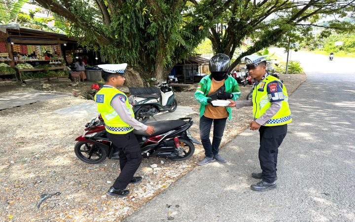 Jumat Berkah, Ditlantas Polda Sulbar Bagikan Makanan Gratis. Tak hanya berbagi makanan, petugas juga memanfaatkan kesempatan tersebut untuk menyampaikan pesan penting tentang keselamatan berlalu lintas. Beberapa poin utama yang disampaikan antara lain pentingnya menggunakan perlengkapan keselamatan seperti helm standar SNI, mematuhi rambu lalu lintas, serta menjaga kondisi kesehatan dan kondisi kendaraan agar terhindar dari kecelakaan.