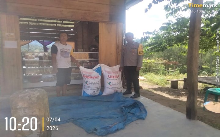 Bhabinkamtibmas Polsek Sumarorong melaksanakan kegiatan penyaluran tambahan pupuk kepada petani jagung di wilayah desa binaan, pada Selasa (7/4/2026).