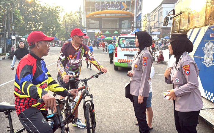 Dalam kegiatan tersebut, para Polwan hadir memberikan rasa aman dan nyaman kepada masyarakat yang memadati kawasan alun-alun untuk berolahraga, berekreasi, maupun menikmati suasana akhir pekan bersama keluarga.