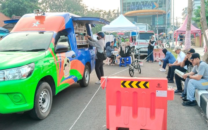 Sidoarjo, Arjunanusantaranews.com, – Membangun karakter bangsa melalui kegemaran membaca. Perpustakaan keliling yang telah disediakan oleh Pemerintah Kabupaten Sidoarjo sangatlah membantu masyarakat untuk menambah pengetahuan dengan berbagai buku-buku yang telah disediakan secara gratis. Dengan layanan baca gratis malalui perpustakaan keliling di Car Free Day (CFD) di Sidoarjo.