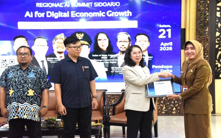 Acara yang berlangsung di Pendopo Delta Wibawa Sidoarjo pagi tadi, Selasa, (21/4/2026) dibuka Asisten Pemerintahan dan Kesejahteraan Rakyat Setda Sidoarjo Ainun Amalia. Empat narasumber dihadirkan dalam Garuda AI Impact Summit 2026 Regional Sidoarjo.